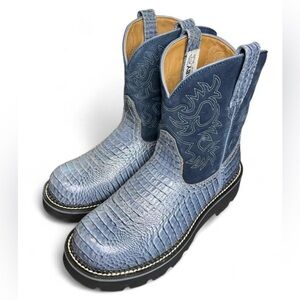 Ariat Fatbaby Original Western Cowgirl Boots in a blue croc pattern. Size 9 1/2. Excellent condition.