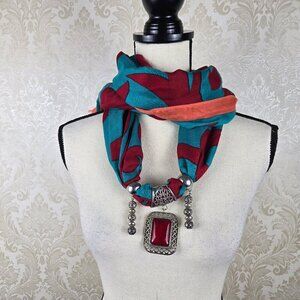 Red Turquoise Coral Infiniti Style Versatile Scarf Silver/Red Jewelry Embellish