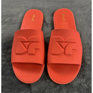 Diane Von Furstenberg "Kellan" Orange Rubber Slide Sandals w/Logo 8M MSRP $200
