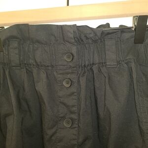 Everlane classic black A-line midi skirt. Slits on the sides, buttons in front, paper bag waist.