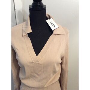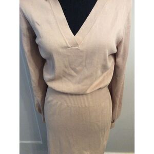 New NWT Cider Khaki Rib Knit Dress Long sleeve V neck Large