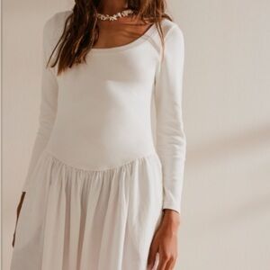 Free People Cream Sundress with 3/4 Sleeves and Square Neck