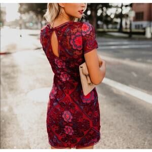 Minuet Red Blue Lace Mini Dress S NWOT. New with out tags, beautiful Red Blue Lace Dress, fully lined, bodycon, mini, keyhole back closure