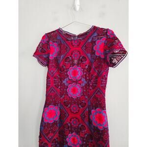 Minuet Red Blue Lace Mini Dress S NWOT
