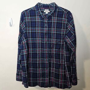 L.L Bean Slightly Fitted Flannel Long Sleeve Button Down Shirt Women’s Blue & Black Size 2X