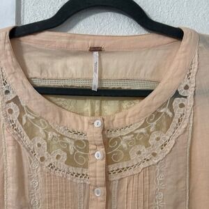 Free People Peach Lace Pintuck Boho Tunic Blouse Cotton Ruffle Hem Womens S