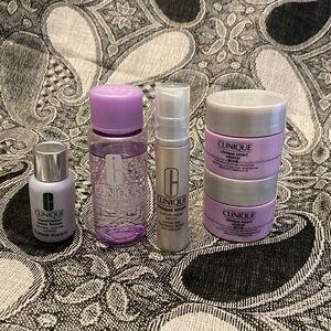 Clinique skincare travel bundle anti aging featuring a range of products 2 Clinique smart clinical MD, make up remover, Clinique smart custom repair serum and repair wear laser focus