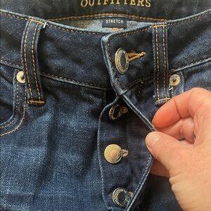 Stylish dark blue jeans. Classic fit. Perfect for casual wear. Size is 2 short