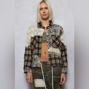 The POL Whiskey Lace Flannel merges vintage plaid style with contemporary lace detailing, ensuring a relaxed, versatile fit.