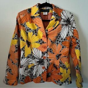 Harve Bernard Blazer Size 10 Floral Fall Colors Orange Yellow Fully Lined