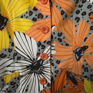 Harve Bernard Blazer. Size 10. Floral. Fall Colors. Orange And Yellow. Fully Lined. Button Front. Front Pockets. 97% cotton 3% spandex. Length from shoulder to bottom is 23”. Armpit to armpit is 19.5”.