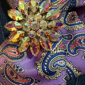 Elegant purple paisley Necktie Necklace handcrafted, thoughtful, intricate One-of-a-kind intricate design. The Necktie Necklace is 100% Italian silk tie by Cremieux. A sophisticated touch of grace to elevate any outfit. Great for your personal wardrobe or as a gift.