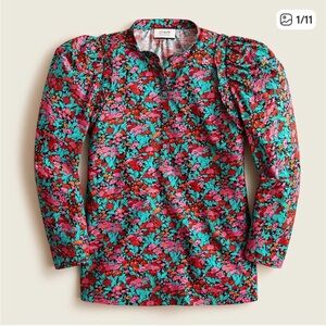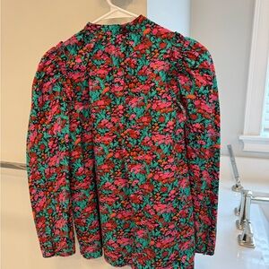 J. Crew Red, Green and Pink Floral Blouse- Puff Sleeve