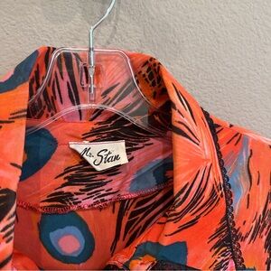 Vintage 70s/80s Mr. Stan Peacock Feather Print Button Down Woven Rayon Blend L