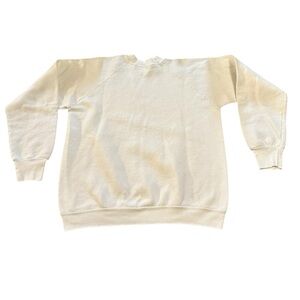 This vintage sweatshirt features a long sleeve, crew neck design with a Galilee Baptist Church graphic on the front, giving it a 90s retro vibe. Made by Fruit of the Loom in the United States, it is crafted from a cotton blend jersey fabric for comfort. The white sweatshirt in size L has a regular fit and a subtle logo accent, making it a classic and versatile piece for both men and women. Perfect for the winter, fall, and spring seasons, this sweatshirt showcases a unique religious theme with a touch of nostalgia.
