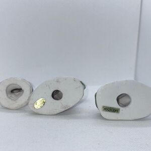 Three holiday village characters - Sidewalk Santa with his collection bucket, girl playing in the snow and young lady carrying a gift. All in excellent condition. Lovely addition to a Victorian holiday village.