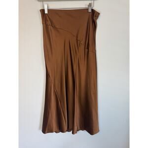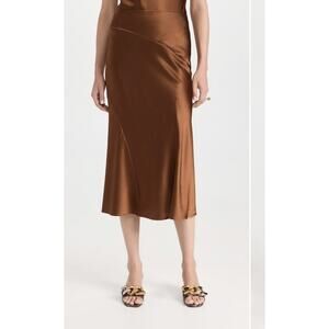 Veronica Beard Sorelle Silk Skirt Dark Ochre Brown Sz 4 $448