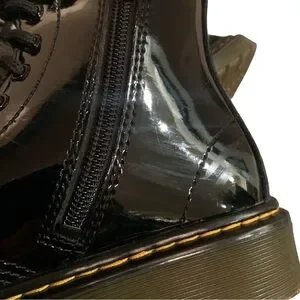 The Dr. Martens 1460 J Black Patent Leather Boots in size 2 US Youth are a stylish and versatile option for any young individual. These boots feature a classic round toe shape and a solid black color, perfect for a variety of casual and activewear occasions. Made of durable patent leather with adjustable lace and zipper accents, these boots offer comfort and cushioning for all-day wear. With a nod to punk and 90s fashion, these Dr. Martens boots are a timeless choice that can be worn year-round.