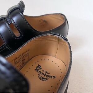 Doc Martens 8065 Mary Jane shoes! Smooth black leather, double horseshoe buckles & chunky brown platform sole. Cute heart-shaped detailing on the vamp. Gently used; light scuffs & flaws pictured, otherwise in excellent condition!