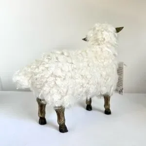 Adorable sheep figurine featuring soft, curly faux wool and realistic detailing. Perfect for spring, Easter, or year-round farmhouse and cottagecore decor. Lightweight yet sturdy.