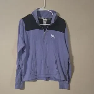Chic zip-up sweater by PINK Victoria's Secret. Lavender body with black accents. Ideal for everyday comfort.