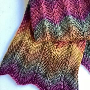 Scarf Hand Crafted Colorful Boho Burgandy Green Gold Brown m