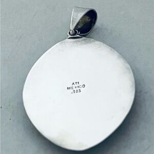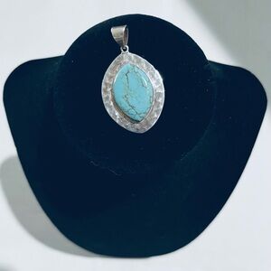 Sterling Silver Mexican Modernist Striking 925 oval designed turquoise pendant. featuring a striking turquoise stone.