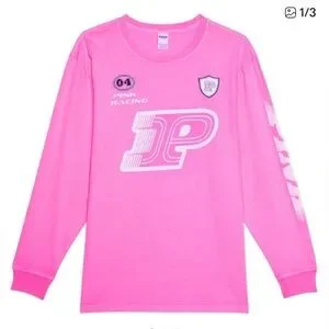 Victoria's Secret Pink Cotton Long Sleeve Crew Neck Racing 100% Cotton Sz L NWT