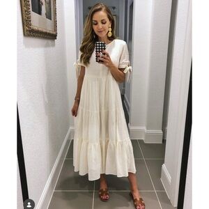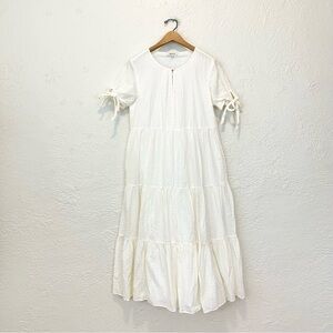 Ivory midi tiered dress. Tie sleeve. Lined. Farmhouse/cottage/feminine style. Amazing condition.