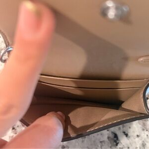 Chic Coach crossbody bag in cream. Features a stylish silver chain strap. Perfect for elevating any look.