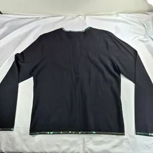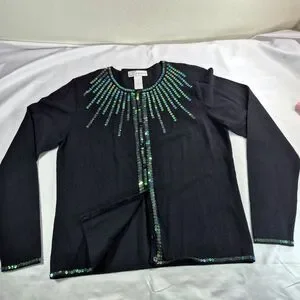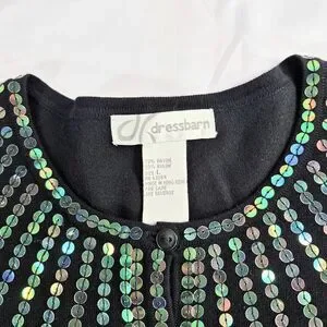Dress Barn Black Sequin Cardigan Sweater Large Metallic Iridescent Button Up