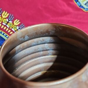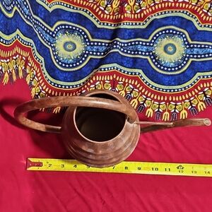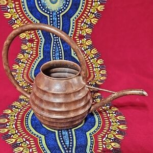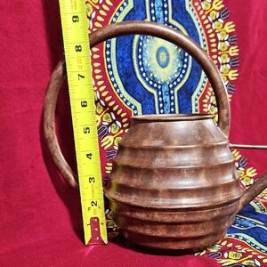 This is a vintage copper beehive watering can. It features a distinctive ribbed, beehive-shaped body with a high, arched handle and a long, narrow spout for precise watering. Constructed from copper, it's designed to develop a natural patina over time. Used as both a functional tool for indoor plants and a decorative accent piece for the home or garden. Perfect for indoor or outdoor use. Please review all photos as they are part of the description.