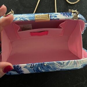 Lilly Pulitzer Catch N Keep Hard Clutch Coastal Blue Gold Chain Floral