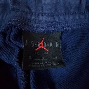 Material: feel is typical cotton-poly fleece blend as with most Jordan athletic pants.
