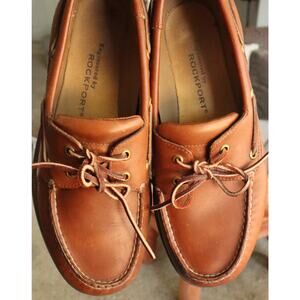 Rockport Perth Leather Brown Loafers Boat Shoes 2 Eye Mens 9.5W Wide Moc MR5106