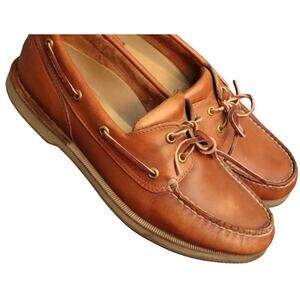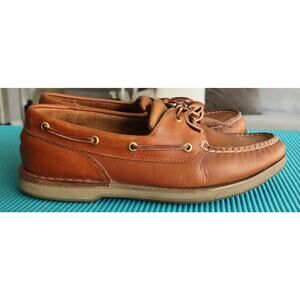 Butter soft leather! GREAT condition! Honey Cognac Brown color! Rockport Perth Leather Loafers Boat Shoes 2 Eye Mens 9.5W Wide Moc MR5106