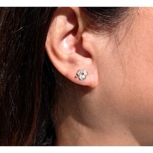 Inspired by the beauty of these earrings feature a pink CZ at the center. Set with the clover leaves and stem. Whether you're treating yourself or looking for a meaningful gift, these studs offer a sophisticated touch of color that transitions perfectly from coffee dates to evening events.