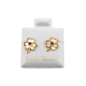 14K Solid Gold Three Leaf Clover Stud Earrings with Pink CZ Shamrock jewelry
