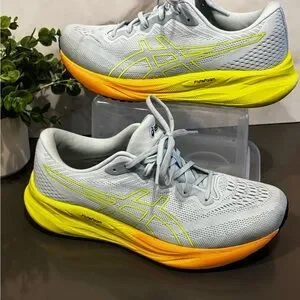 Asics Gray and Yellow Athletic Shoes