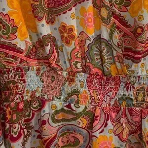 1. State Pink and Orange Ruffled Bell Sleeve Blouse