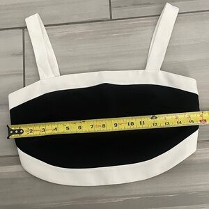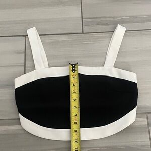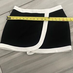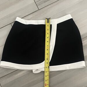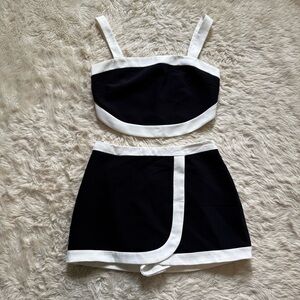 Chic black and white skirt set. Features a sleeveless top and mini skirt. Bold contrast design. It’s a size small but it fits like a size medium/Large.