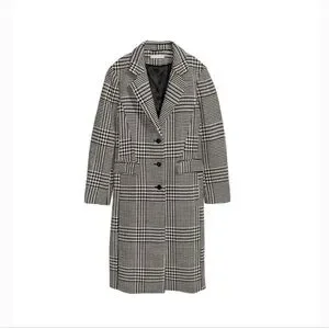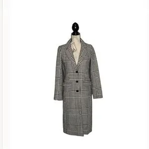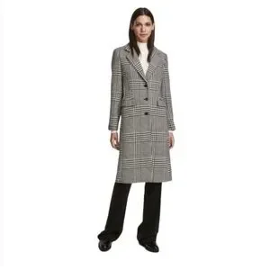 H&M Coat Long Classic & Chic Wool Black White Houndstooth NWOT Sz 2 XS S