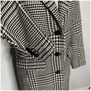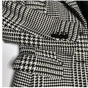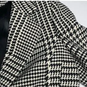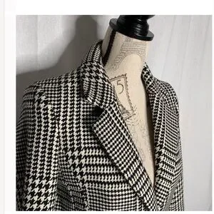 This is a wardrobe staple for an up and coming professional. By H&M this longline menswear inspired and gorgeous wool blend coat is a Sz 2 XS or S, see the measurements below, in a classic and striking black and white houndstooth with black lining. It is 47% Wool and 53% Polyester and it has a notched collar, matte black button front, decorative buttons on the cuff and flap hip pockets and a single back vent. The label says Sz 2 and the measurements taken flat will fit a pin XS or S as well, P2P 18.5” and the Length is 39”. A gorgeous long coat perfect for spring and fall or layer it up in winter. NWOT $130. Thanks for stopping by, I hope you enjoyed my closet. 😊 🇨🇦 ❤️