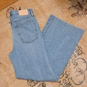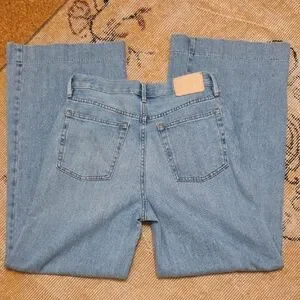 Stylish flare and wide leg jeans. Light blue denim. Perfect for casual wear.