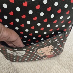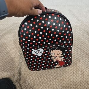 Chic and playful Betty Boop backpack featuring a stylish polka dot design. Perfect for adding a touch of fun to your outfit. Durable and spacious for everyday use.