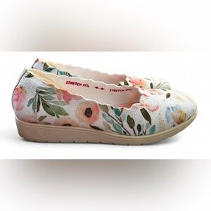 Skechers Cleo Flex Washable Knit Scalloped Pastel Floral Flats with Memory Foam