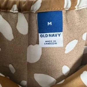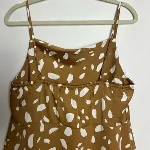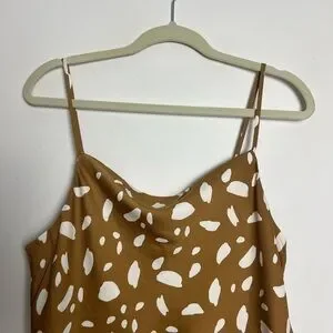Old Navy Brown Cream Print Cowl Neck Satin Midi Slip Dress Size Medium