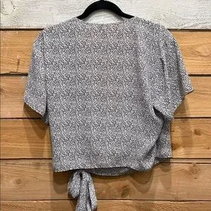 Chic wrap blouse with a stylish tie detail. Perfect for versatile wear.