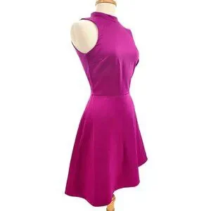 H&M 4 Satin Dress A-line Sleeveless High Neckline Zip-up Party Mini Pocket Pink