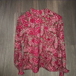 HML Floral Blouse Size Small Pink Print Long Sleeve Top